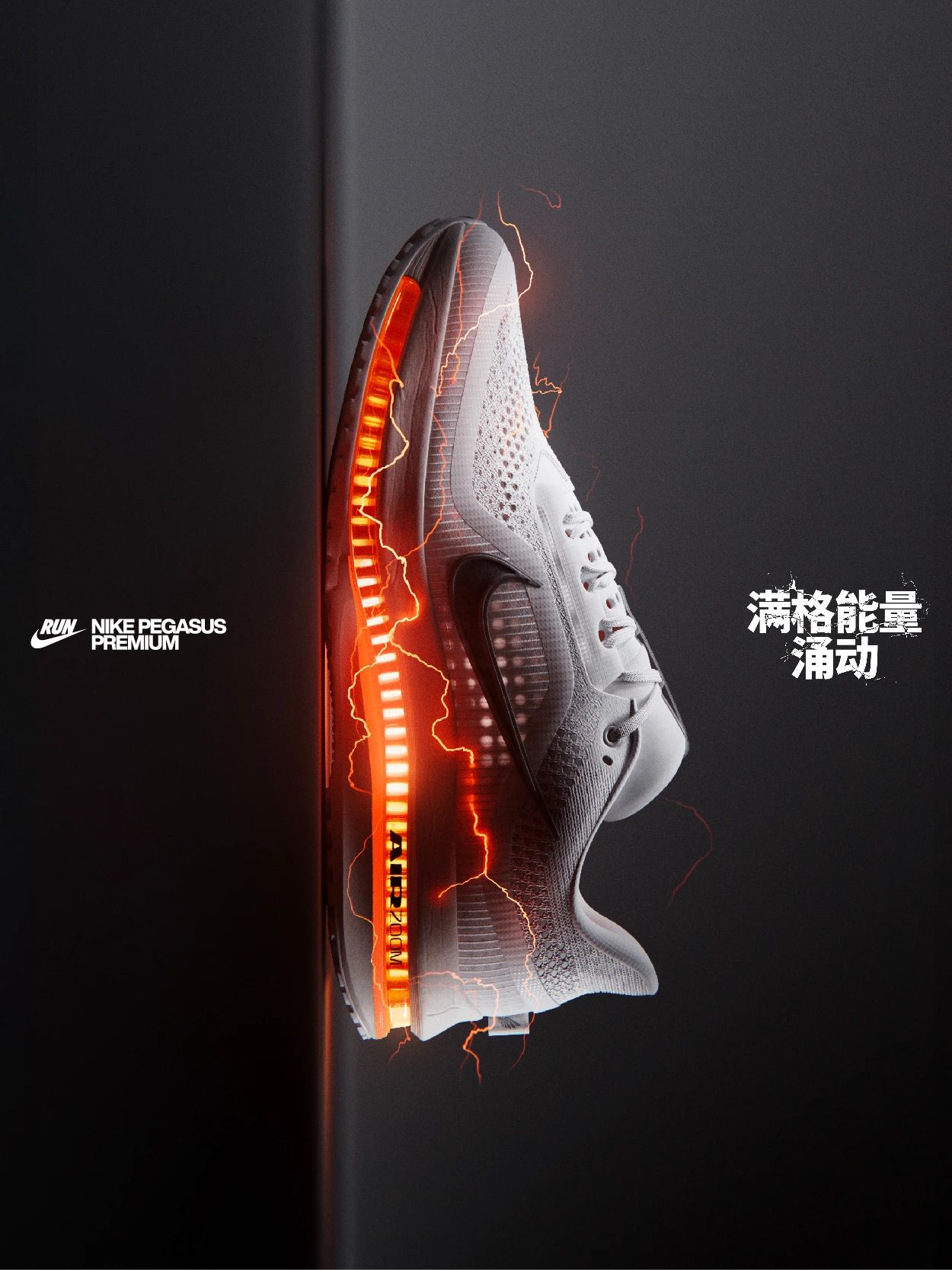今年,耐克在更新了跑鞋矩阵之后,推出首款 Premium 级别的跑鞋——耐克顶级飞马。我们将这款跑鞋的 Headline「more power to you」汉化成中文:满格能量涌动。不仅延续飞马系列一直主打的卖点——能量反馈,更将“顶级”的能量进行极致演绎。