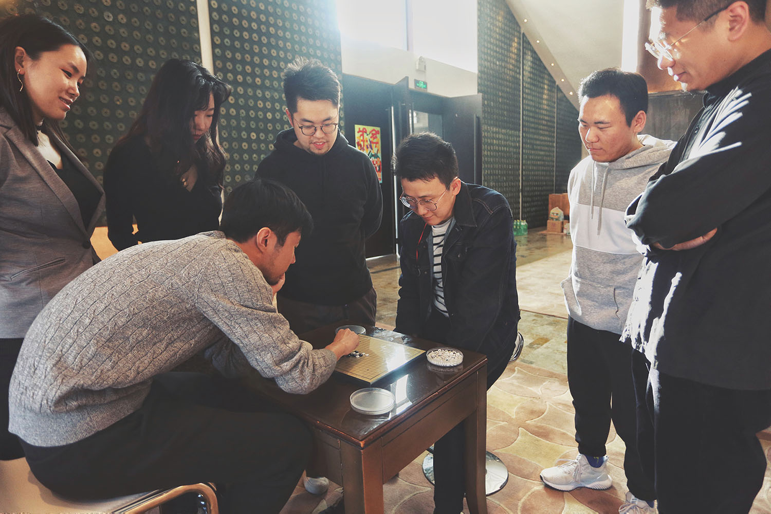 每年开场前都要来一场五子棋对决。今年的黑马[侃侃]一路杀出重围,一举获得西海街道 50 几公斤级锦标赛总冠军。