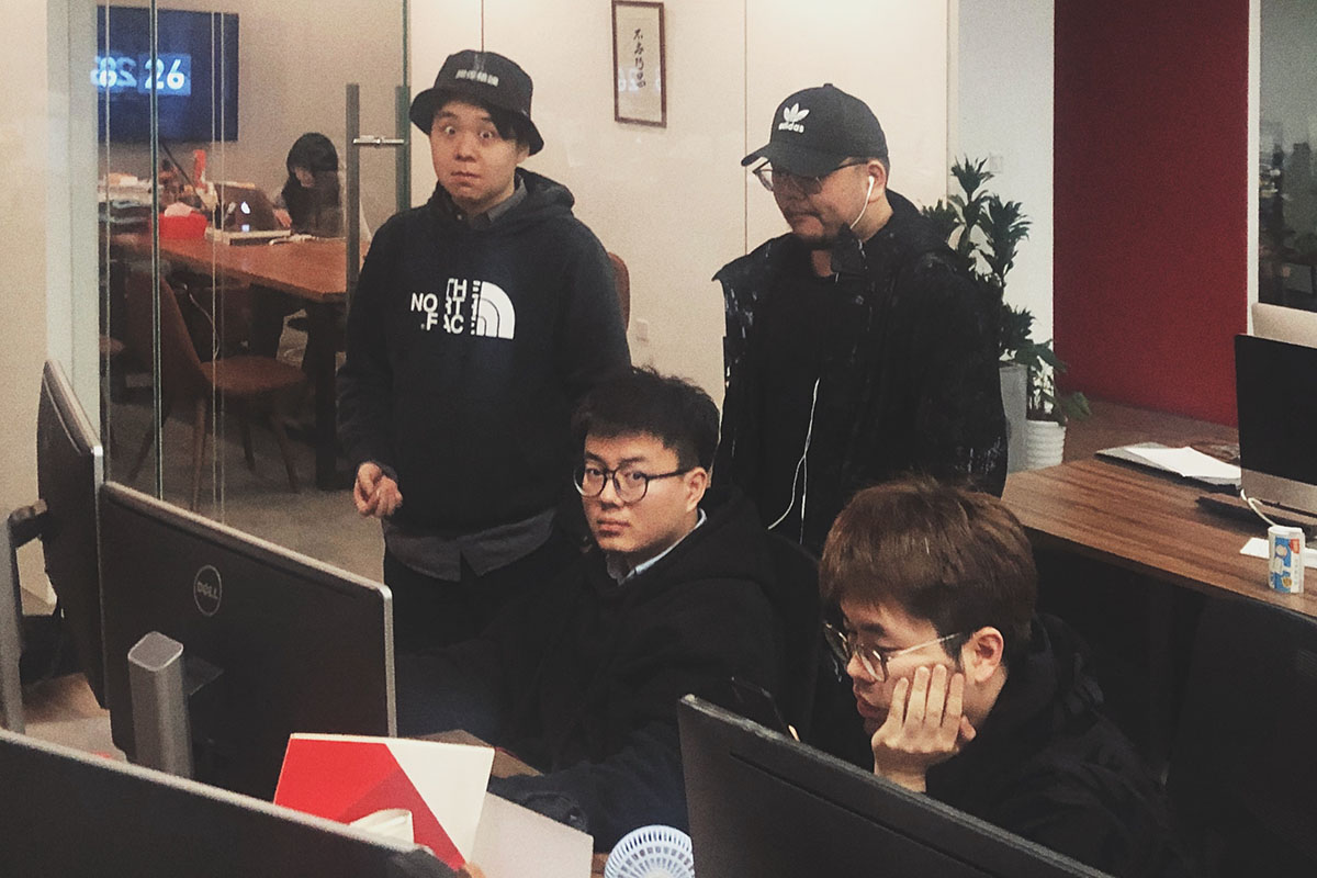 幕后主创是这四名黑衣人。等待最终版渲染时情绪高度紧张,需要一支 RELX。