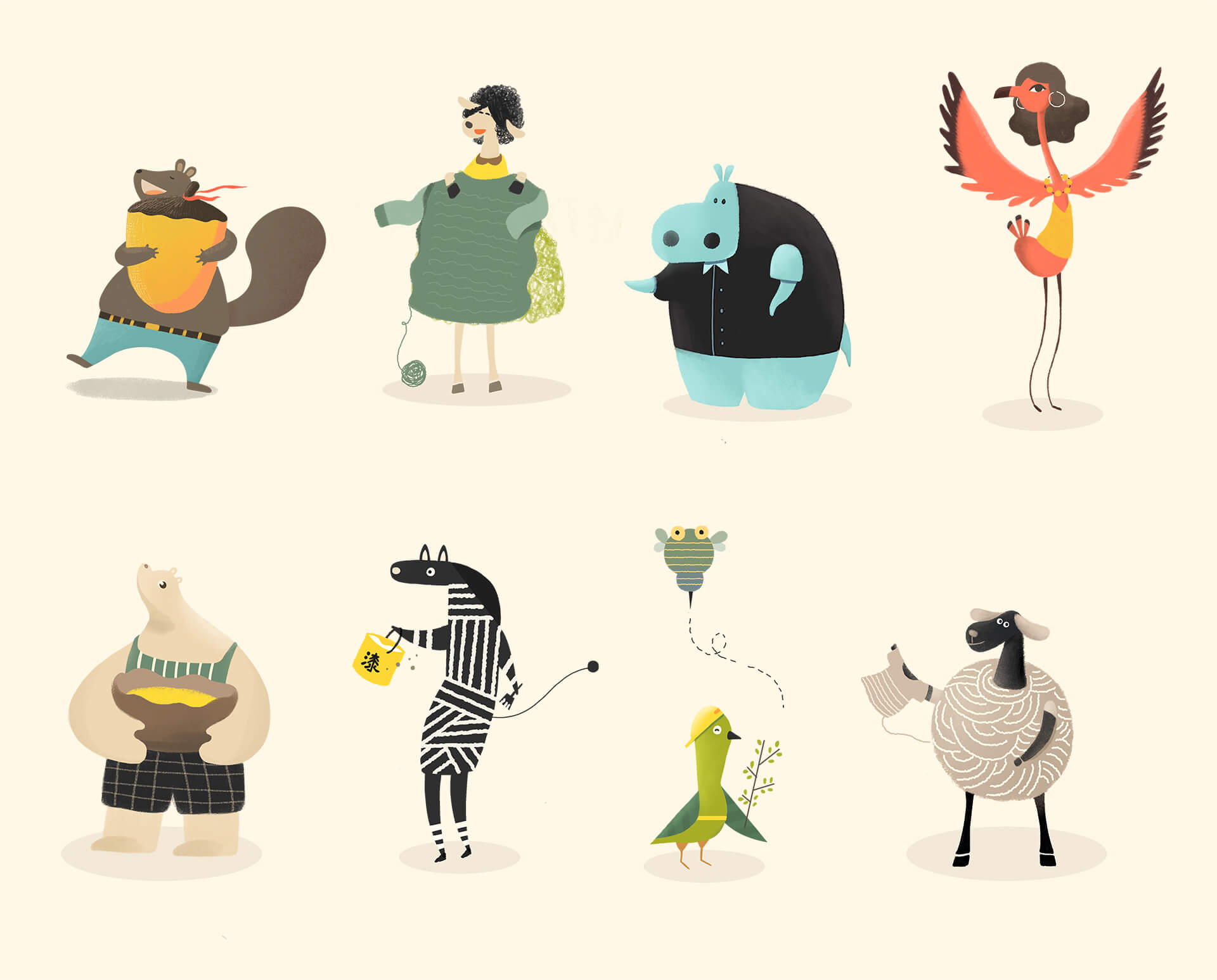 作为阿袋妈的第一次正式亮相,我们希望在展示她温情、聪慧的形象与个性外,也能让这支片子承载充实的内容,不止告诉大家她是谁、能做些什么,还要表达她为什么这样做,以此传递价值观念。于是,我们塑造了绵羊小姐、河马先生和火烈鸟等角色形象,作为阿袋妈主要客户的代表,一起客串演出并献声,把神通广大的阿袋妈帮助大家高效营销的事迹唱了出来。