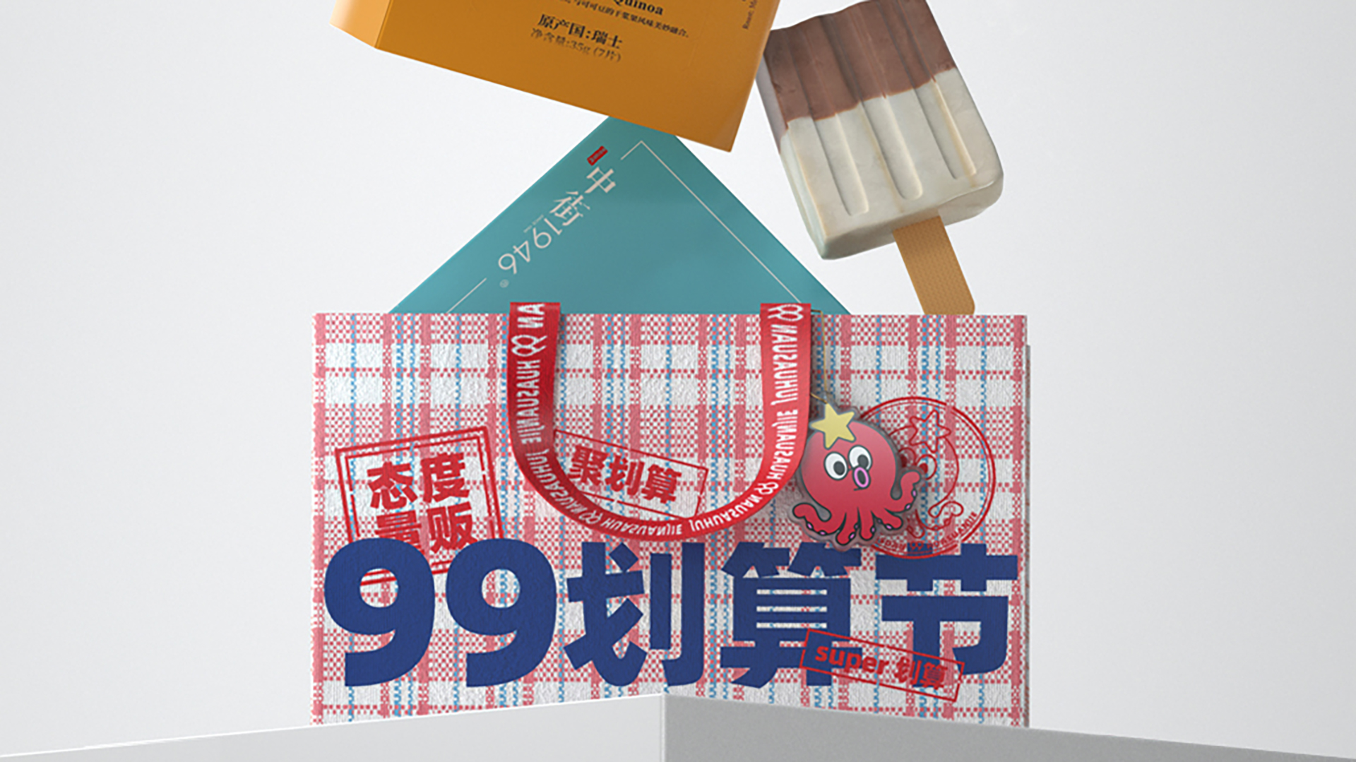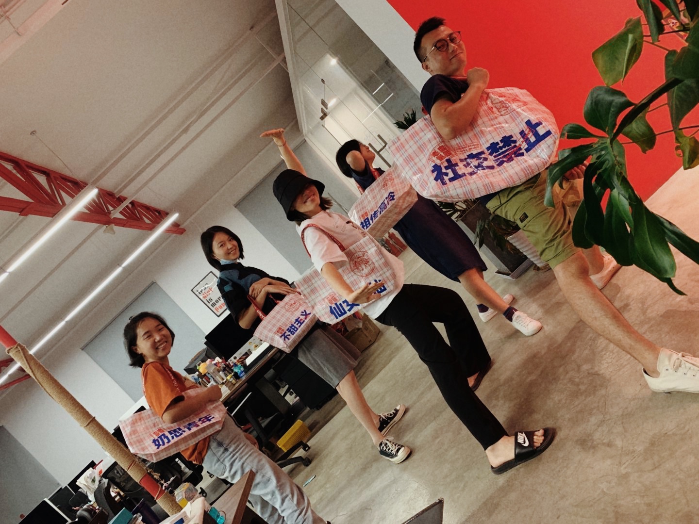 除此之外,聚划算希望将几个新锐品牌中的高能玩家推到台前,与年轻客群来一次愉快互动。「态度量贩」手提袋的设计制作被提上日程 。