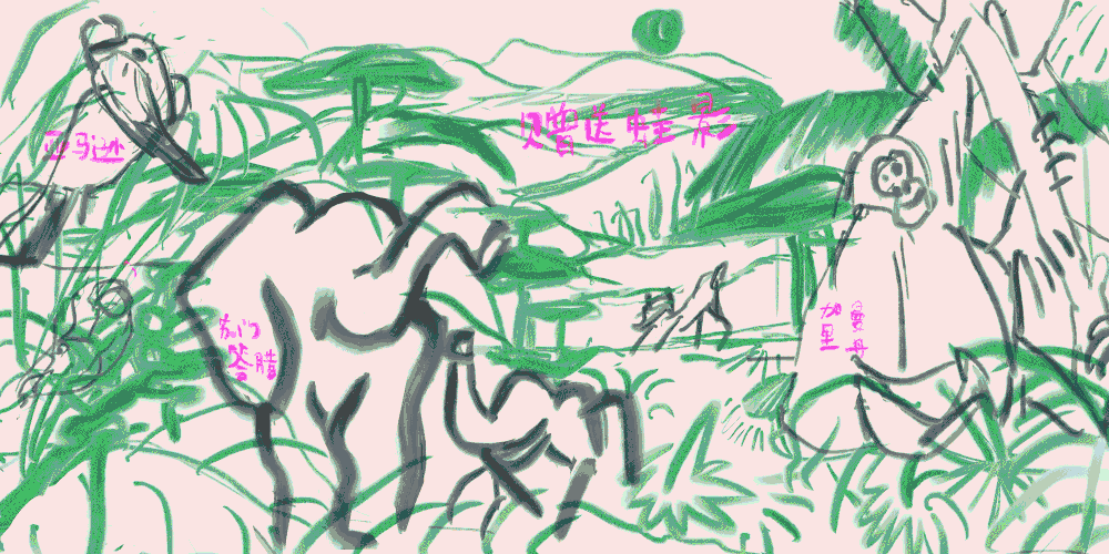 完成单个动物的草图后,再搭建场景并丰富细节。